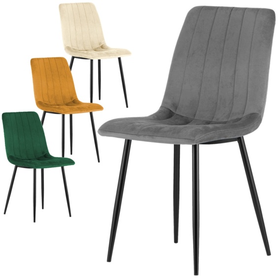 Nowoczesne, solidne i wygodne krzesło AURORA tapicerowane welurową tkaniną z przeszyciami w pięknych kolorach.
