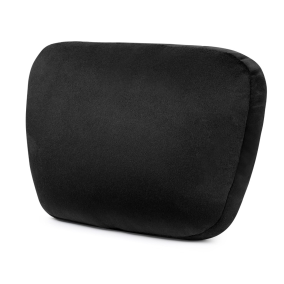 Poduszka zagłówkowa w kolorze czarnym, wykonana z miękkiego welurowego materiału. Ergonomiczny kształt zapewnia stabilne podparcie szyi i pleców, poprawiając komfort podczas siedzenia i podróży.