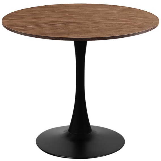 Stół okrągły z blatem o średnicy 70 cm w kolorze ciemny orzech na centralnej nodze w kolorze czarnym model VICTORY BROWN WOOD SMOKE SLIM