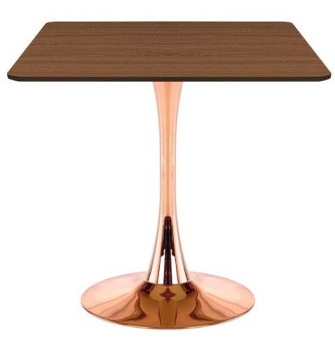 TORI 70x70 - Kwadratowy stół z blatem w kolorze ciemnego drewna, noga w kolorze miedzi   - minimalistyczny, a zarazem efektowny mebel do salonu lub jadalni.